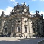 Und unentwegt macht uns Herr Winkler auf die sehenswerten Dinge aufmerksam und erzählt uns deren Geschichte und Wissenswertes. Wir gehen zurück zum Theaterplatz vor der Semperoper und schauen uns die einstige katholische Hofkirche an, in der in einer Kapsel das Herz August des Starken ruht. Sein Körper ist im Krakauer Dom beigesetzt, da er auch als König von Polen gekrönt war.