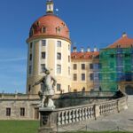 Wieder liegt ein Tag voller Erlebnisse vor uns. Der Bus holt uns wie gestern am Morgen ab. Ein erstes Ziel ist das prächtige Jagdschloss Moritzburg, das, wie sollte es anders sein, August der Starke für sich erbauen ließ. Umgeben ist das Gebäude von schönen Park- und Waldanlagen, die dem Fürsten zum Jagdvergnuegen dienten, und von den Moritzburger Karpfenteichen. Neben dem Wildbret gab es also auch genug Fisch zu essen! Aber, wer hätte das gedacht, auch dieses Schloss war teilweise eingeruestet.