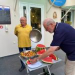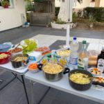 Heute wartet ein Traumstrand auf Sithonia, dem mittleren Finger der Halbinsel Chalkidiki auf uns. Dazu führt uns morgens die Fahrt auf der Autobahn rund um dem Thermaischen Golf an Thessaloniki vorbei auf die Halbinsel zwischen Kassandra und Athos. Der Meinung unserer Stadtführerin nach fahren nach Sithonia die verheirateten Menschen, die Ruhe suchen. Mit den vergangenen turbulenten Tagen haben wir offensichtlich das richtige Ziel. Die Plätze in der Reihe mit teilweise direktem Blick auf‘s Meer waren so begehrt, dass einige frühzeitig starteten. Aber auch in der zweiten Reihe ist der CP in einer der versteckten Buchten auf Sithonia ein Platz, auf dem man sich einfach erholen muss. Nach Abschalten des Motors konnte man den feinkörnigen Sandstrand zum Sonnenbaden aufsuchen oder auch das Bad im Meer genießen. Am Abend versammelten sich alle zur Campertafel. Die griechischen Bauernbratwürste und Soutzoukakia wurden als Alternative zur heimischen Bratwurst von allen gelobt. Alternativ gab es Kabeljau-Filet. Alle waren fleißig und mit Salaten, Obst, Brot, interessanten Gesprächen und einigen Spielchen und natürlich auch einigen Ouzo‘s ging der Abend rasend schnell vorüber. Morgen ist Gottseidank ein Ruhetag.