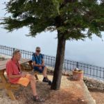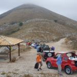 Nach einer kurzen Nacht weckt uns der Morgen auf Korfu mit Sonnenschein. Wir wollen mit Jeeps Korfus Bergwelt erfahren. Kurze Einweisung für die Fahrer und los geht‘s. Die kleinen kurvigen Straßen, die verwinkelten Bergdörfer und vor allem die Natur auf dem Weg zum höchsten Berg von Korfu, dem Pantokrator, kann man nur auf diese Weise erschließen. Nach der Abfahrt querfeldein wartet auf uns in einem einsamen Bergdorf ein Essen, welches aus den auch in unserer Küche zum Teil verwendeten Zutaten einen neuen Geschmack zaubert und natürlich satt macht. Wieder auf dem Boden der Insel angekommen, haben wir am Strand einen Blick in Richtung Italien geworfen um festzustellen, das die Behauptung, Italien sehen zu können, wohl eine Legende ist. Die schneebedeckten Gipfel des Ceraunischen Gebirges in Albanien mit seinem über 2.000 m hohem Gipfel, dem Maja eh Çikës, sind jedoch leider auch nicht zu sehen, da Wolken die Sicht verdecken. Nach dem Erreichen des Camps werden die am frühen Morgen provisorisch abgestellten Womos umgeparkt. Dann beginnt der erste Abend auf Korfu schon mal mit einem Bad.