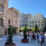 In Deutschland wird gewählt und wir sind in Makedonien am Thermaischen Golf. Dieses Gebiet auf der südlichen Balkanhalbinsel erstreckt sich von Nord-Griechenland bis Bulgarien. Die Griechen beanspruchen jedoch, mit Thessaloniki die Hauptstadt und auch das Stammland zu stellen. Also ja nicht das griechische Makedonia mit Nord-Mazedonien verwechseln. Auf der Hinfahrt zur Stadt gab uns unser Guide schon einen kurzen geschichtlichen Abriss zur griechischen Mythologie, der römischen und osmanischen Besatzungszeit bis zum heutigen multikulturellen Leben mit über 60.000 Studenten in Thessaloniki. In der Stadt angekommen, sahen wir mit eigenen Augen, was diese wechselhafte Geschichte an interessanten Bauten hervor gebracht hat. Die Stadtrundfahrt begann mit der Besichtigung des Wahrzeichens von Thessaloniki, dem rund 33 Meter hohen “Lefkos Pyrgos”, was übersetzt so viel wie “Weißer Turm” bedeutet. Danach erlebten wir den grandiosen Ausblick von der alten Burg über die Stadt. Das nächste Ziel war die fünfschiffige Agios Demetrios Basilika. Der heilige Demetrios ist der Schutzpatron von Thessaloniki. Ihm wurde die Kirche gewidmet. In der Kirche kann man die alten Katakomben besichtigen, in denen es verschiedene Ausgrabungen zu bewundern gibt. Danach begann unser Stadtbummel. Leider waren die Markthallen mit den sechs bleigedeckten Kuppeldächern am Sonntag geschlossen. Am Aristoteles-Platz konnte dann jeder in die vielen Kaffes und Restaurants ausschwärmen, um den Blick auf das Meer und das vielfältige Stadtleben zu genießen. Nach soviel neuen Eindrücken wurde während der Busfahrt nach Hause schon mal die spätere „Ruhephase“ probiert. Am Abend hatten wir unsere nächste Teilnehmerbesprechung. Danach gab es eine Verkostung des selbstgebrannten Tsipouro vom Campingplatz der vielen besser mundete als die vorläufigen Wahlergebnisse aus Deutschland.