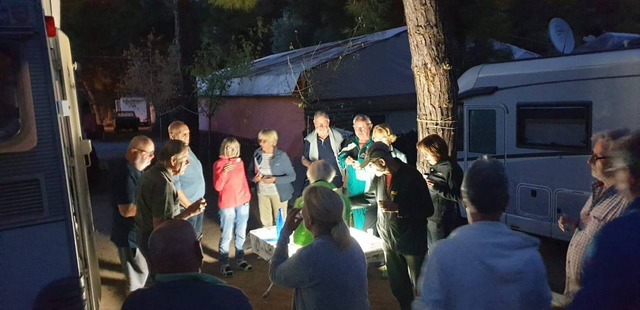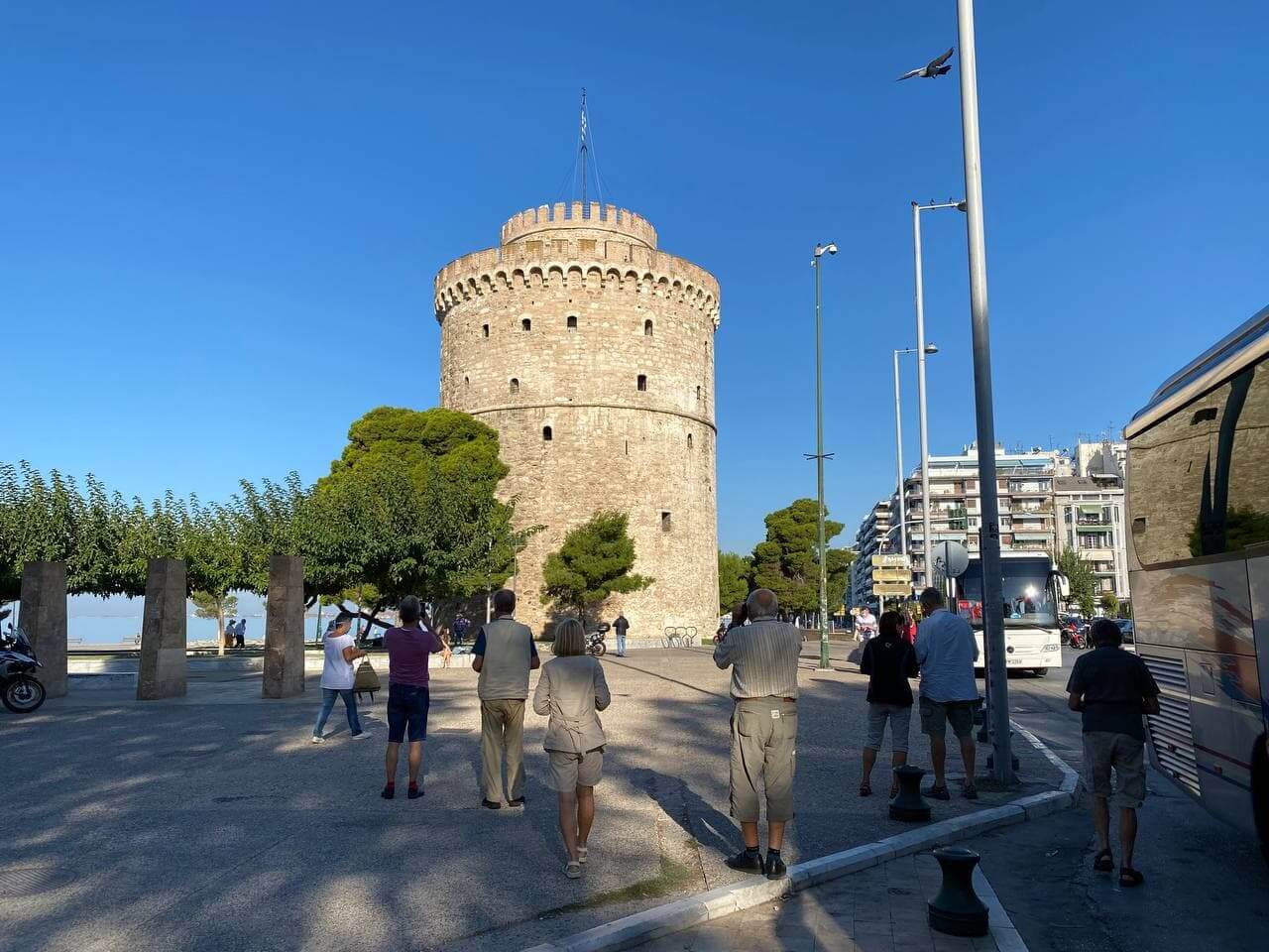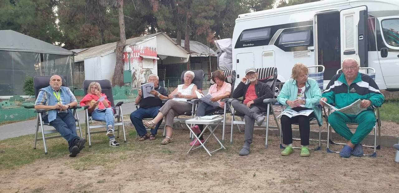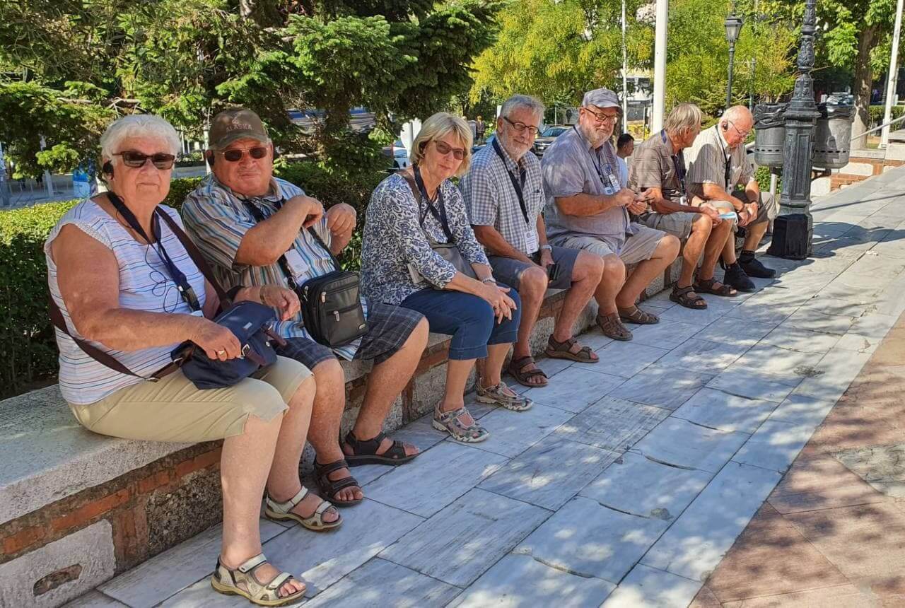 In Deutschland wird gewählt und wir sind in Makedonien am Thermaischen Golf. Dieses Gebiet auf der südlichen Balkanhalbinsel erstreckt sich von Nord-Griechenland bis Bulgarien. Die Griechen beanspruchen jedoch, mit Thessaloniki die Hauptstadt und auch das Stammland zu stellen. Also ja nicht das griechische Makedonia mit Nord-Mazedonien verwechseln. Auf der Hinfahrt zur Stadt gab uns unser Guide schon einen kurzen geschichtlichen Abriss zur griechischen Mythologie, der römischen und osmanischen Besatzungszeit bis zum heutigen multikulturellen Leben mit über 60.000 Studenten in Thessaloniki. In der Stadt angekommen, sahen wir mit eigenen Augen, was diese wechselhafte Geschichte an interessanten Bauten hervor gebracht hat. Die Stadtrundfahrt begann mit der Besichtigung des Wahrzeichens von Thessaloniki, dem rund 33 Meter hohen “Lefkos Pyrgos”, was übersetzt so viel wie “Weißer Turm” bedeutet. Danach erlebten wir den grandiosen Ausblick von der alten Burg über die Stadt. Das nächste Ziel war die fünfschiffige Agios Demetrios Basilika. Der heilige Demetrios ist der Schutzpatron von Thessaloniki. Ihm wurde die Kirche gewidmet. In der Kirche kann man die alten Katakomben besichtigen, in denen es verschiedene Ausgrabungen zu bewundern gibt. Danach begann unser Stadtbummel. Leider waren die Markthallen mit den sechs bleigedeckten Kuppeldächern am Sonntag geschlossen. Am Aristoteles-Platz konnte dann jeder in die vielen Kaffes und Restaurants ausschwärmen, um den Blick auf das Meer und das vielfältige Stadtleben zu genießen. Nach soviel neuen Eindrücken wurde während der Busfahrt nach Hause schon mal die spätere „Ruhephase“ probiert. Am Abend hatten wir unsere nächste Teilnehmerbesprechung. Danach gab es eine Verkostung des selbstgebrannten Tsipouro vom Campingplatz der vielen besser mundete als die vorläufigen Wahlergebnisse aus Deutschland.