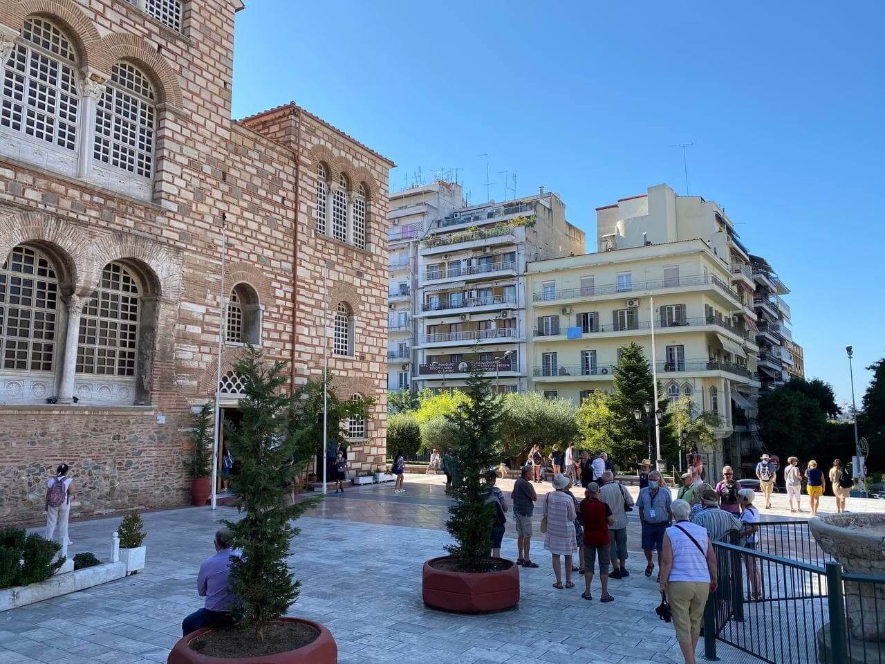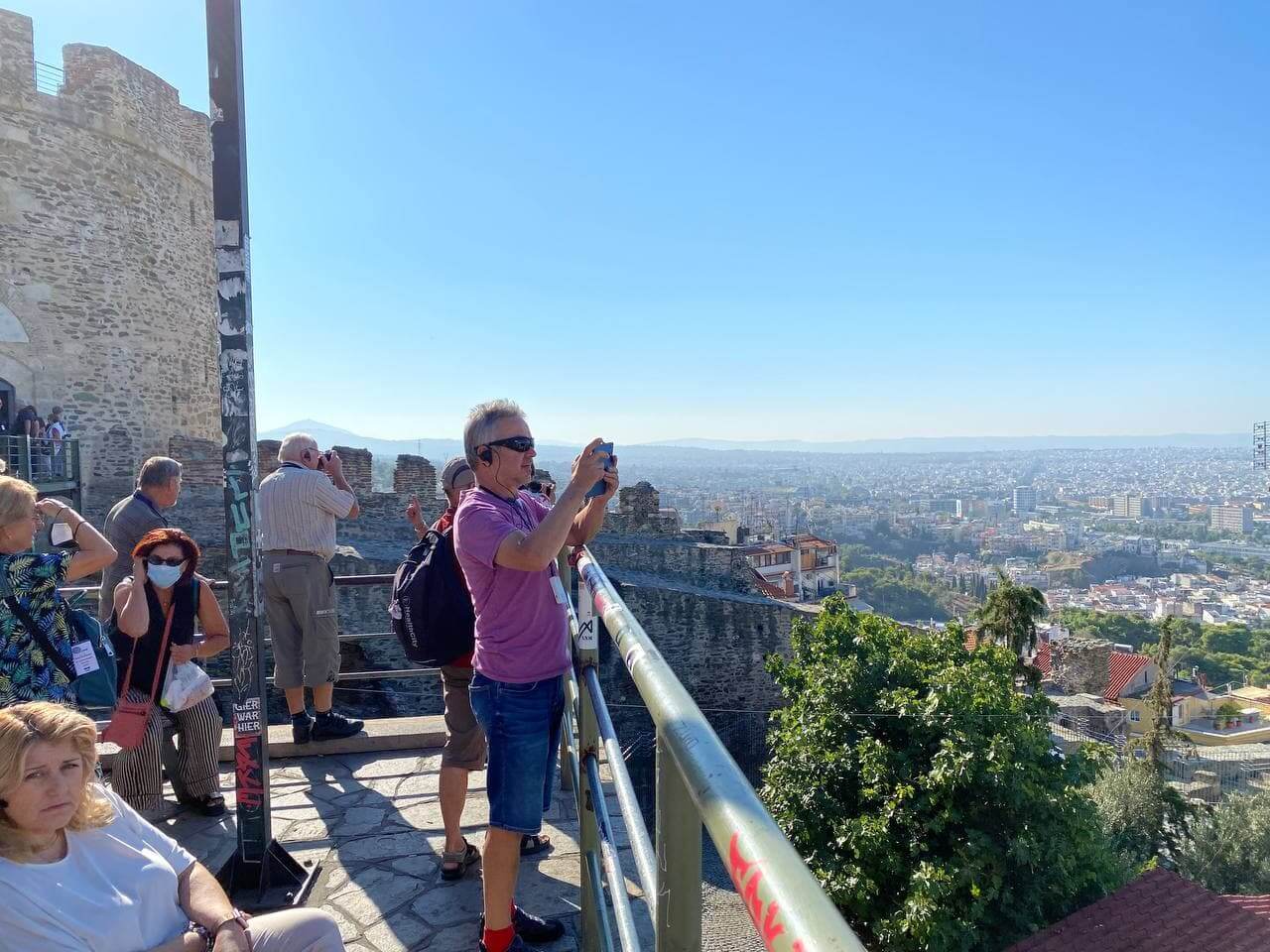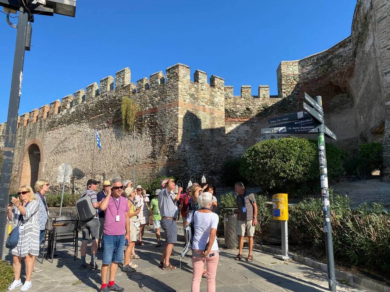 In Deutschland wird gewählt und wir sind in Makedonien am Thermaischen Golf. Dieses Gebiet auf der südlichen Balkanhalbinsel erstreckt sich von Nord-Griechenland bis Bulgarien. Die Griechen beanspruchen jedoch, mit Thessaloniki die Hauptstadt und auch das Stammland zu stellen. Also ja nicht das griechische Makedonia mit Nord-Mazedonien verwechseln. Auf der Hinfahrt zur Stadt gab uns unser Guide schon einen kurzen geschichtlichen Abriss zur griechischen Mythologie, der römischen und osmanischen Besatzungszeit bis zum heutigen multikulturellen Leben mit über 60.000 Studenten in Thessaloniki. In der Stadt angekommen, sahen wir mit eigenen Augen, was diese wechselhafte Geschichte an interessanten Bauten hervor gebracht hat. Die Stadtrundfahrt begann mit der Besichtigung des Wahrzeichens von Thessaloniki, dem rund 33 Meter hohen “Lefkos Pyrgos”, was übersetzt so viel wie “Weißer Turm” bedeutet. Danach erlebten wir den grandiosen Ausblick von der alten Burg über die Stadt. Das nächste Ziel war die fünfschiffige Agios Demetrios Basilika. Der heilige Demetrios ist der Schutzpatron von Thessaloniki. Ihm wurde die Kirche gewidmet. In der Kirche kann man die alten Katakomben besichtigen, in denen es verschiedene Ausgrabungen zu bewundern gibt. Danach begann unser Stadtbummel. Leider waren die Markthallen mit den sechs bleigedeckten Kuppeldächern am Sonntag geschlossen. Am Aristoteles-Platz konnte dann jeder in die vielen Kaffes und Restaurants ausschwärmen, um den Blick auf das Meer und das vielfältige Stadtleben zu genießen. Nach soviel neuen Eindrücken wurde während der Busfahrt nach Hause schon mal die spätere „Ruhephase“ probiert. Am Abend hatten wir unsere nächste Teilnehmerbesprechung. Danach gab es eine Verkostung des selbstgebrannten Tsipouro vom Campingplatz der vielen besser mundete als die vorläufigen Wahlergebnisse aus Deutschland.