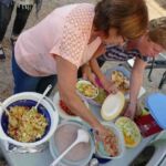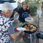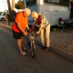 Von der letzten Campertafel ist noch Grillgut übriggeblieben. Wir legen fest, heute gibt es Resteessen! Aber vorher hat unsere älteste alleinfahrende Hella die Idee, alle Männer müssen mit ihrem E-Bike eine Runde auf dem Platz drehen. Ein super Gaudi…