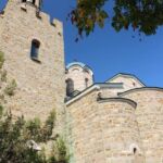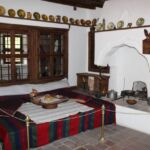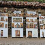 Heute findet wieder ein Busausflug statt. Nach sehr kurzer Fahrzeit erreichen wir auf einem Hochplateau über Tarnovo das Dorf Arbanassi. Es gilt als Kleinod bulgarischer Architektur. Da sich der Ort an einer früher wichtigen Handelsstraße befindet, gelangte er im 16. bis 18. Jhd. unter osmanischer Herrschaft zu Wohlstand und Reichtum. Sogar mit Iran und Indien soll Handel betrieben worden sein. Entsprechend prachtvoll sind die Kirchen und Häuser ausgestattet, die wir besichtigen. Herausragende Baudenkmäler sind das Konstanzaliev-Haus und die Christi-Geburt-Kirche, die wir natürlich besichtigen. Die Fresken im Kircheninneren beziehen sich unter anderem auf die altgriechischen Philosophen. Das hatten wir doch auf unserer Reise schon mal?! Richtig: Bei den Moldauklöstern in Rumänien!