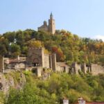 Danach besichtigen wir mit dem Bus eine der reizvollsten Städte Bulgariens: Veliko Tarnovo, vom 12. bis 14. Jhd. Hauptstadt des zweiten Bulgarischen Reiches und damals zweitwichtigste Stadt nach Konstantinopel. Schon die Lage der Altstadt ist etwas besonderes. Die Häuser schmiegen sich terrassenförmig eng an einen steilen Felshang und sind nur über kleine Gässchen erreichbar. Unten fließt der Fluß Jantra. In den Häusern, deren Baustil aus der Wiedergeburtszeit stammt, befinden sich kleine Läden und Geschäfte und laden zum Bummeln ein. Ansonsten ist Veliko Tarnovo mittlerweile die zweitgrößte Universitätsstadt des Landes.
