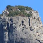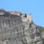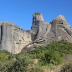 Die 300 m hohen Felstürme von Meteora künden uns an, daß wir gleich unser heutiges Ziel „Camp Meteora“ erreicht haben. Noch ist das Wetter schön.