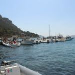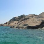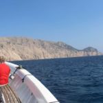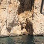 Wir nähern uns den Inseln Molara und Tavolara. Wir schippern ganz langsam nah an den Felswänden des Tavolarafelsens entlang und erkennen die früheren Schmugglerhöhlen und -grotten.