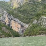 Die Hoffnung, dass sich diesmal die Sonne durchsetzt und unsere zweite Bootstour nicht auch wieder sprichwörtlich ins „Wasser“ fällt, erfüllte sich. Ein Bus, der schon ein bewegtes Leben hinter sich hat, holte uns am Camp ab und brachte uns zum zweiten Stausee in der Kaskade der drei Stauseen des Drin. Fand die erste Hälfte unserer Anfahrt noch auf normalen Straßen statt, forderte der zweite Teil in den Albanischen Alpen Fahrzeug, Fahrer und Passagiere bis an die Grenze heraus. Die „Straße“ bestand nur noch vereinzelt aus Belag. Der Rest war Loch an Loch. Hier zeigte sich die Qualität und stoische Gelassenheit unseres Fahrers. Doch die Bootstour auf dem Stausee entschädigte für alles. Die Sonne schien, der Ausblick vom Boot auf die steil aus dem Wasser ragenden Felsen und die prächtige Natur war unvergleichlich. Nach einer Stunde Fahrt durch eine Gegend, die eher noch in Norwegen zu finden ist, gab es in einem Restaurant am Ufer des Sees ein ausgiebiges Essen mit albanischen Spezialtäten. Die Rückfahrt mit dem Boot sorgte wiederum dafür, dass die erste Hälfte der Busrückreise gelassener hingenommen wurde. Am Ende waren sich alle einig, dieser Tag war ein wunderschönes Erlebnis. Ein besonderes Dankeschön erhielt natürlich unserer Busfahrer.