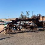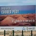 Wir überqueren die Grenze nach Süd Australien. Was wir nicht wussten: eine Stunde Zeitverschiebung und plötzlich stimmen unsere Handys nicht mehr mit unserer Reiseplanung überein. Statt mehr als 1 Stunde vo der geplanten Zeit am Treffpunkt zu sein, sind es nunmehr nur noch wenige Minuten. Bereits weit bevor wir Coober Pedy erreichen, erkennen wir die Gegend der reichhaltigen Opal Vorkommen an der Ausbeutung durch die Menschen. Viele km bevor wir Coober pedy erreichen Türmen sich Geröll und Schutthalden beiderseits der Straße auf. Rechts und links weit bis in die Tiefe des Landes. Spontan denken wir an Fracking. So etwa muss es aussehen, wenn der Mensch massenhaft Steine und Böden auspresst, um ihnen Rohstoffe zu entziehen. Nun ja, wir sind Reisende und wollen hier lieber nicht zu tief einsteigen … Jedenfalls treffen wir uns in Coober Pedy beim Mining Museum zur Besichtigung.