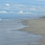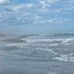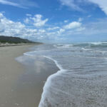 Und diese Mündung ist unsere nächste Station. Wir parken am Rand der Dünen und spazieren ein paar hundert Meter durch sie hindurch bis wir am offenen Meer sind. Schon der Weg dorthin beschert uns gute, reine Seeluft und dann der weiße, endlose Sandstrand, hohe, rauschende Wellen. Einfach klasse!