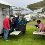 Wir sind in Victoria angekommen und unsere Uhren müssen wieder eine halbe Stunde weiter gestellt werden. Der kleine Ort Portland am Meer bietet alle Möglichkeiten zum Einkaufen und so beschließen wir kurzerhand die für morgen geplante Campertafel auf heute vorzuverlegen. Unsere Wetter Apps sagen für heute besseres Wetter als für morgen voraus. Wir kaufen also ein und bereiten alles vor und dann …. fängt‘s an zu regnen! Was tun? Camper finden immer Lösungen: wir stellen 3 Wohnmobile mit Markisen so, dass wir als Gemeinschaft sitzen und grillen können und haben einen schönen Abend.