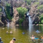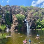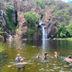 Rund 320 km sind zu bewältigen – aber nur für diejenigen, die den direkten Weg nehmen. Alle anderen folgen einer Empfehlung von Berry Springs aus weiter nach Südwesten zu fahren und in den Nationalpark Litchfield Park zu fahren. Eine schöne Abwechslung nach dem öden Highway. Wir fahren durch tropische Wälder, sehen Wasserfälle, die in Cascaden von den Felsen heruntersprudeln oder finden einen kleinen See zum Baden, der auch von Wasserfällen gespeist wird.
