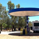 Wir nähern uns allmählich dem Zentrum des kleinen Kontinents, den wir aber gerade als unendlich groß wahrnehmen. Heute heißt es tatsächlich NUR geradeaus fahren. Ganz wenige, etwa 2-3 ganz sanfte Kurven, ansonsten den ganzen Tag geradeaus! Das ist anstrengend! Kaum LKW‘s, kaum andere Autos … 3 Tankstellen liegen auf dem Weg, wir halten kurz an für etwas Abwechslung.