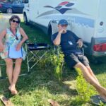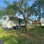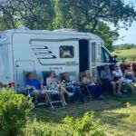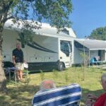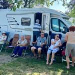 Etwa gegen 14.00 Uhr treffen die Reiseleiter Andrea & Matthias am Campingplatz nördlich von Prag ein. Alle anderen sind schon da. Es ist heiß! Das Thermometer zeigt fast 35°C. Zum Glück ist ein kleiner Pool vorhanden. Der ist zwar auch schon recht warm, aber besser als gar keine Abkühlung. Den Nachmittag verbringen wir entspannt irgendwo im Schatten; mit einer leichten Briese lässt sich die Hitze gut ertragen. Um 17.00 Uhr starten wir mit unserer Begrüßung. Alle haben sich einen Schattenplatz gesucht und so starten wir mit einem kühlen Getränk die Begrüßungsrunde. Nach der Begrüßung wartet ein guter Prager Schinken nebst Beilagen auf uns. Nach dem Essen sitzen wir noch lange draußen vor der kleinen Gaststätte und erzählen und lernen uns besser kennen. Am späten Abend schließlich versuchen wir trotz der Hitze in den Schlaf zu finden.