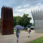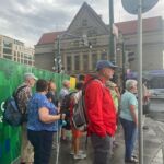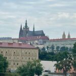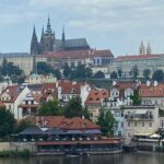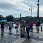 Pünktlich um 9.00 Uhr stehen wir alle bereit vor dem Campingplatz und warten auf den Bus. Mit ein wenig Verspätung, die dem Verkehr und einigen Baustellen geschuldet ist, fahren wir los. Gestern hatten wir die große Hitze mit Temperaturen von mehr als 35°C, heute, kaum dass wir im Bus sitzen, bricht ein Gewitter über Prag herein mit heftigem Regen und wir hoffen, dass es beendet ist, wenn wir in Prag den Bus verlassen.