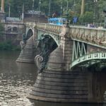 Tatsächlich lässt der Regen nach und die meiste Zeit des Vormittags können wir trocknen Fußes die Stadtführung genießen. Wir spazieren zunächst an der Moldau entlang bis zur Karlsbrücke, gehen über sie hinüber und wieder zurück. Weiter geht’s in die Altstadt, bis zur berühmten astronomischen Uhr.