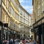 Ach dem Glockenschlag um 12.00 Uhr, folgt das kleine Schauspiel der Uhr, wie zu jeder vollen Stunde. Schon ein wenig hungrig setzen wir unseren Rundgang noch etwas fort, durch die kleinen Gassen, statten dem Egon Erwin Kisch Haus noch einen Besuch ab, bevor wir den Anfang des langen Wenzelsplatzes sehen. Dann geht’s zurück zum Marktplatz. Hier ist unser Restaurant fürs Mittagessen.
