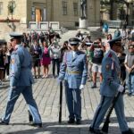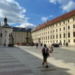 Heute steht unser Bus bereits 15 Minuten vor 9.00 Uhr bereit zur Abfahrt. Das Ziel heißt heute „Prager Burg“ oder Hradschin. Die Reisebusse kommen im Minutentakt vor der Burg an. Zunächst gibt’s eine Sicherheitskontrolle. Dann sind wir innerhalb der Burganlage. Sie besteht aus mehreren Teilen. Neben der eigentlichen Burg, wo sich einst der legendäre Prager Fenstersturz zugetragen hat, ist hier oben auch die große Kathedrale im gotischen Stil und natürlich der heutige Regierungssitz des tschechischen Präsidenten. Wir wollen auch nicht vergessen, dass sich direkt neben dem Regierungssitz die deutsche Botschaft befindet, wo kurz vor der Vereinigung Deutschlands Genscher die historische Verkündigung über die Genehmigung der Ausreise der damaligen DDR Bürger gemacht hat.