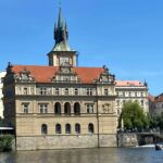 Es ist Zeit zum Mittagessen. Wir sitzen ein wenig unterhalb der Burg in historischen Mauern mit grandiosem Blick auf die Stadt Prag und die Moldau.