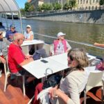 Während der Mittagspause beschließen wir gemeinsam am Nachmittag eine Bootsfahrt auf der Moldau zu unternehmen. Alle sind begeistert über die kleine Planänderung. Und so gehen wir nach dem Essen hinunter zum Bootsanleger und machen es uns auf dem Schiff gemütlich. Noch einmal können wir aus anderer Perspektive alle Schönheiten der Goldenen Stadt Prag an uns vorüberziehen lassen und das alles bei Sonnenschein genießen.