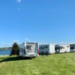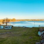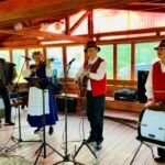 Da heute Sonntag ist, haben wir entsprechend wenig Verkehr aufgrund der fehlenden LKW und können so die Fahrt durch wunderschöne Wälder, Seen und Auen genießen. Unser heutiger Campingplatz ist zwar abseits gelegt, bietet dafür aber von allen Plätzen einen traumhaften Blick auf den See und die frisch gemähten Wiesen. Am Abend treffen wir uns zu einem Grillabend, der von einer vierköpfigen Folklore Gruppe umrahmt wird.
