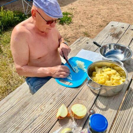 Leider müssen wir die Campertafel absagen, da der starke Wind das Grillen unmöglich macht. Nach der Fahrerbesprechung und dem Abendessen sitzen alle noch draußen in kleinen Gruppen und unterhalten sich.