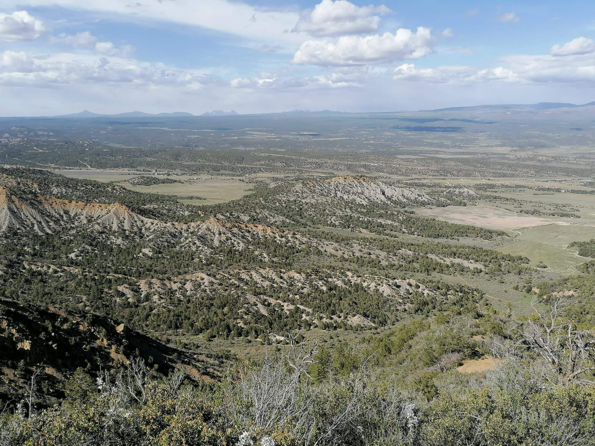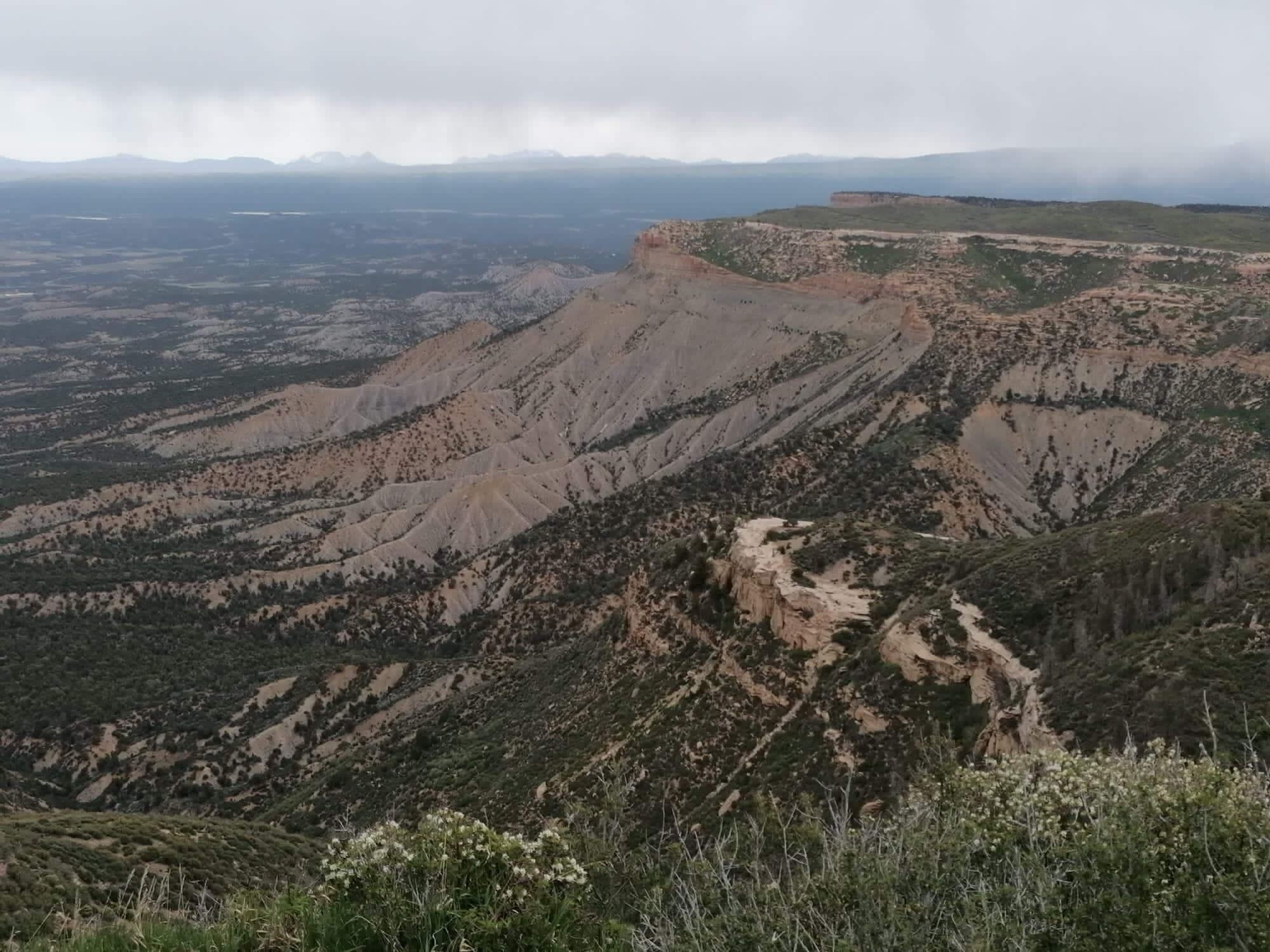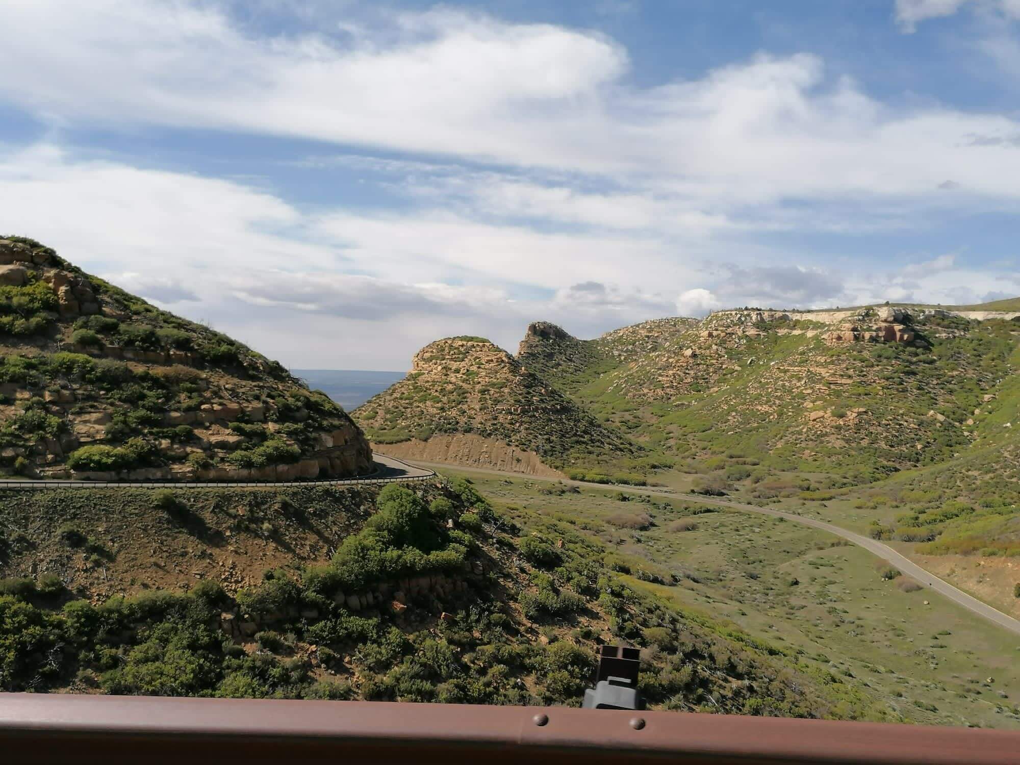 Schließlich passieren wir die Grenze zu Colorado. Obwohl es relativ flach daher geht, fahren wir die ganze Strecke auf über 2000 m Höhe. Dann biegen wir ab und erreichen den Nationalpark Mesa Verde.