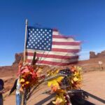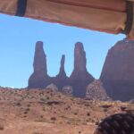 Dann nähern wir uns dem Monument Valley. Die riesigen orangefarbenen Felsen, vom Wind und Wasser rund gewaschen beeindrucken schon aus der Ferne. Wir treffen am Campingplatz ein. Der ist inmitten dieser gigantischen Felsen gelegen. Nur eine kurze Pause legen wir ein, dann wartet bereits um 15.00 Uhr ein Jeep auf uns. Er bringt uns mitten hinein in die gigantische Felslandschaft. Unser Fahrer, ein Navajo Indianer, zeigt uns schöne Plätze für Foto Perspektiven und singt uns am Ende sogar noch ein indianisches Lied. Wieder geht ein schöner und ganz sicher unvergesslicher Tag zu Ende.