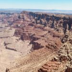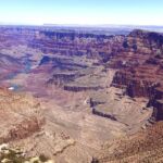 Am Morgen genießen wir noch die letzten Bilder der beeindruckenden Felsformationen des Monument Valley. Dann geht es hinaus in die weite Prärie Nordamerikas. Einige Stunden nur geradeaus. Kaum wechselnde Landschaft. Doch irgendwann tauchen die ersten Einschnitte in der Erde rechts des Highways auf. Die ersten Seitentäler des gewaltigen Grand Canyon. Ohne große Wartezeit passieren wir die Einfahrt in den Nationalpark. Dann die ersten View Points. Es ist ergreifend vor diesem gewaltigen Einschnitt in die Erde zu stehen. Die Sicht ist gut, man kann den Colorado River unten im Tal fließen sehen. Er hat über Jahrtausende dieses Tal geschaffen.