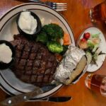 Nach dem ausgiebigen Besuch der Felskante und unzähligen Fotos finden wir uns auf unserem nächsten Campingplatz in Tusayan, südlich des Canyons ein. Ein wenig Pause, bevor wir uns zur Fahrerbesprechung treffen. Heute Abend gehen wir ins nahegelegene Steakhouse. Zuerst einmal lassen wir unser heutiges Geburtstagskind Gerlinde mit einem Ständchen hochleben! Dann wir wenden wir uns den ordentlichen Rib-eye Steaks mit Beilagen und Dessert zu. Am Abend feiern wir noch in kleiner Runde Gerlindes Geburtstag, bevor wir uns zur Ruhe begeben. Morgen müssen wir früh raus.
