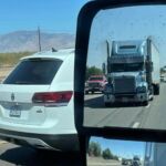 Eine lange Etappe liegt vor uns. Der Highway führt geradeaus und manchmal kann man im Rückspiegel tolle Trucks fotografieren.