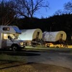 Die Übernahme unserer Wohnmobile wird sich ein wenig verzögern, deshalb fahren wir erst gegen halb elf mit dem Bus vom Hotel ab. Noch einmal dürfen wir San Francisco sehen. Wir verabschieden uns von der wunderschönen Stadt. Es dauert etwa eine Stunde bis wir die Station erreicht haben. Dann läuft es recht gut. Unsere Fahrzeuge sind fertig! Wir können sofort mit der der Übernahme beginnen. Doch für die ganze Gruppe braucht es seine Zeit, bis alles erledigt ist. Es wird 14.00 Uhr bis der Letzte den Platz verlassen kann. Unser erster Halt ist bei einem Supermarkt. Schließlich müssen unsere Kühlschränke und Vorräte noch gefüllt werden. Wer schlau war, hat sich eine Liste gemacht. Nun sind es noch rund 200 km bis zum ersten Camp. Leider sind sämtliche Autobahnen sehr stark gefüllt und wir fahren von einem Stau in den nächsten. Irgendwann ist das überwunden und aus Autobahnen werden kleinere Straßen, das Panorama wird ländlich und wir nähern uns dem Yosemite Park. Zum ersten Mal muss auch getankt werden. Langsam neigt sich der Tag dem Ende und es ist bereits richtig dunkel, als wir den Campingplatz erreichen. Dann kommt noch Arbeit auf jedes Team zu. Die Koffer müssen noch in den Schränken verteilt werden, die Lebensmittel eingeräumt und die Betten gemacht werden. Da fällt uns ein: gegessen haben wir auch noch nicht. Trotz allem finden wir uns anschließend noch zu einem Absacker zusammen. Es gibt viel zu erzählen über einen weiteren bewegten Tag.