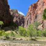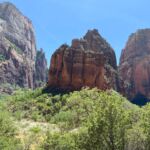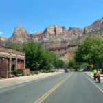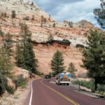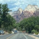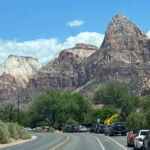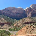 Für viele von uns beginnt der Tag mit einem kühlen Bad im Pool des Casablanca Casinos. Dann brechen wir auf und verlassen bei sengender Hitze den Wohnmobilstellplatz. Zunächst geht’s über den Highway, dann werden die Straßen kleiner und die Landschaft verändert sich. Wunderschöne Felslandschaften zeigen sich. Es geht immer weiter hinauf und schließlich erreichen wir den Zion Nationalpark.