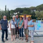 Der letzte Teil der Gruppe trudelt am Tag unseres Treffens auf dem Campingplatz Pappasole vor den Toren Piombinos ein. Ein großer Teil hatte die Anreise vorher bewältigt und den wunderschönen Platz schon einige Tage genutzt. Nach der Begrüßung durch den Reiseleiter verständigten wir uns bei einem Gläschen italienischen Wein, wie wir die nächsten gemeinsamen Tage miteinander verbringen wollen, damit die Reise für alle entspannt und gelassen absolviert werden kann. Dann wurden Informationen zum ersten Fahrtag und zum Wechsel auf die Insel Elba gegeben. Abends trafen wir uns zum Begrüßungsessen im Restaurant des Camps um die toskanische Küche und uns kennenzulernen. Das Essen war reichhaltig und sehr schmackhaft. Die ersten gemeinsamen Gespräche machten neugierig auf die weitere Reise.