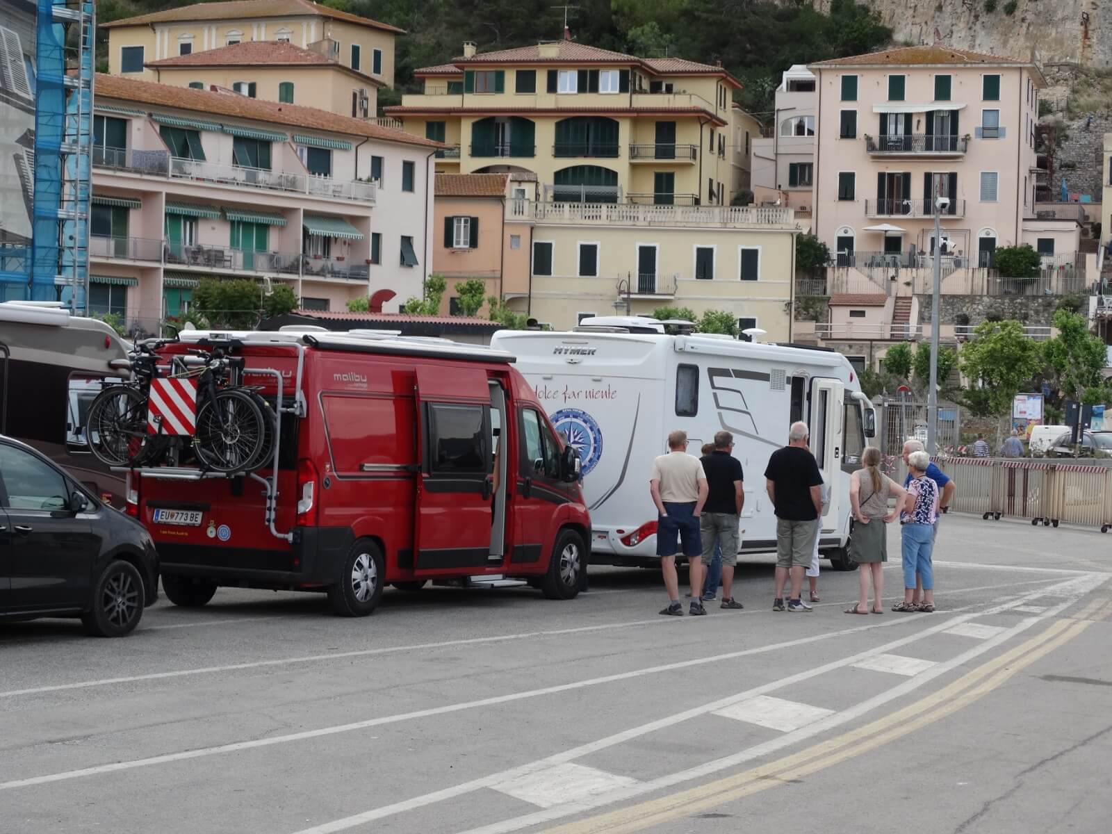 Am frühen Morgen fahren wir zum Hafen in Portoferraio. Arrivederci Elba – Bonjour Korsika. Da es um diese Jahreszeit noch keine direkte Verbindung zwischen den Inseln gibt, müssen wir den Umweg über Piombino und Livorno nehmen. Bei gutem Wetter sind die insgesamt 5 Stunden Fährfahrt jedoch auch eine angenehme Möglichkeit, die Seele baumeln zu lassen. In Bastia angekommen, führt uns die Straße zu unserem CP auf dem Cap Corse. Noch ein bisschen einkaufen und dann kann man den ersten Abend auf Napoléons Geburtsinsel genießen. Da bei der ersten Fahrt auf Korsika das Navi alle herausgefordert hat, war das eine gute Gelegenheit, das „Ankerbier“ gemeinsam zu trinken und den Ursachen und Gläsern auf den Grund zu gehen.