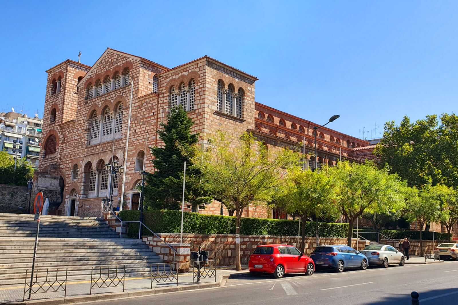 Das nächste Ziel war die fünfschiffige Agios Demetrios Basilika. Der heilige Demetrios ist der Schutzpatron von Thessaloniki. Ihm wurde die Kirche gewidmet. Leider fand in der Kirche eine Messe statt so dass wir nur einen kurzen Blick in das Innere werfen konnten. Wie in jeder weltlichen Einrichtung hat der Chef des Hauses, in diesem Fall der Bischoff, auch seinen Parkplatz direkt am Eingang. So konnten wir das spektakuläre Kennzeichen des Fahrzeugs bewundern.