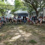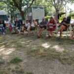 Nach den vielen vergangenen Fahr- und Besichtigungstagen ist dieser Ruhetag willkommen. Die Sonne lädt zu Baden ein – natürlich in der berühmten Ochsenbauchbucht. Aber auch mal relaxen, lesen oder einfach am Strand spazieren gehen und vielleicht mit dem Nachbarn nur klönen. Vor der abendlichen Teilnehmerbesprechung galt nochmals der Dank all denen, die sich an der Vorbereitung und dem Gelingen unserer letzten Campertafel beteiligt haben. In der letzten Teilnehmerbesprechung unserer Reise wurden die nächsten Tage besprochen. Nach Olympia und unserem Abschiedsessen geht es leider nach Patras und damit zum Ende unserer gemeinsamen Reise. Aber erst mal steht uns mit Olympia noch eine erfahrungsreiche Besichtigung bevor.