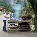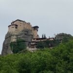 Auf unserem Weg in die Region Thessalien galt es zunächst den Pindos zu überwinden. Das gelang mit der griechischen Autobahn A2 problemlos, da sich Tunnel an Tunnel reihte. Danach erwartete uns auf der Fahrt nach Kalambaka zu den Metéora-Klöstern Kurve an Kurve. Im Gegenteil zu gestern, als dass der Busfahrer meistern musste, waren die Fahrer heute selber gefordert. Am Nachmittag sind wir mit dem Bus auf Entdeckungsreise gegangen, um die „schwebenden“ Klöster auf den Sandsteinfelsen zu sehen. Nach einem mühsamen Aufstieg konnten wir das Kloster des Agios Nikolaos Anapavsas und vom Zugang deutlich bequemer auch das Kloster Agios Stéphano von innen bewundern. Dieses Kloster ist seit den 60er Jahren ein Frauenkloster. Um diese bizarre Bergwelt mit ihren sechs noch bewohnten Klöstern mit dem Fotoapparat naturgetreu einzufangen, musste man schon schwindelfrei sein. Nach unserer Rückkehr warf unserer Campingplatzbetreiber den Grill an und wir konnten endlich unser Begrüßungsessen, welches wir auf der Fähre nach Griechenland leider ausfallen lassen mussten, echt griechisch nachholen. Mit einem schönen Abend, netten Gesprächen und dem einen oder anderen Ouzo ging ein weiterer Tag in Griechenland zu Ende, der sicher in guter Erinnerung bleiben wird.