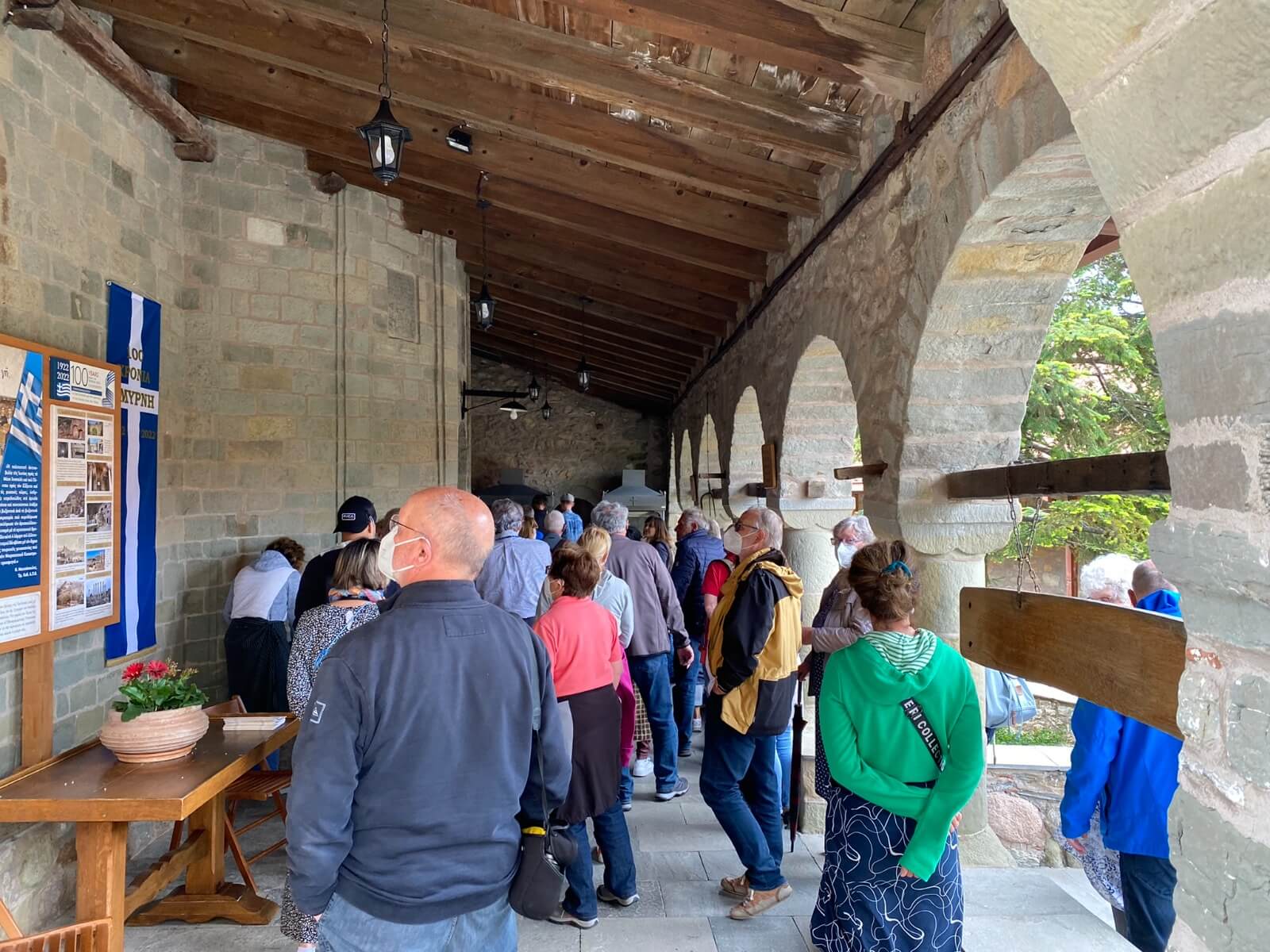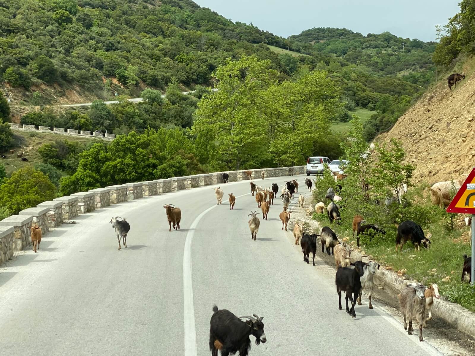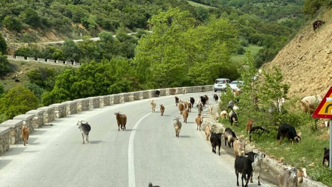 Auf unserem Weg in die Region Thessalien galt es zunächst den Pindos zu überwinden. Das gelang mit der griechischen Autobahn A2 problemlos, da sich Tunnel an Tunnel reihte. Danach erwartete uns auf der Fahrt nach Kalambaka zu den Metéora-Klöstern Kurve an Kurve. Im Gegenteil zu gestern, als dass der Busfahrer meistern musste, waren die Fahrer heute selber gefordert. Am Nachmittag sind wir mit dem Bus auf Entdeckungsreise gegangen, um die „schwebenden“ Klöster auf den Sandsteinfelsen zu sehen. Nach einem mühsamen Aufstieg konnten wir das Kloster des Agios Nikolaos Anapavsas und vom Zugang deutlich bequemer auch das Kloster Agios Stéphano von innen bewundern. Dieses Kloster ist seit den 60er Jahren ein Frauenkloster. Um diese bizarre Bergwelt mit ihren sechs noch bewohnten Klöstern mit dem Fotoapparat naturgetreu einzufangen, musste man schon schwindelfrei sein. Nach unserer Rückkehr warf unserer Campingplatzbetreiber den Grill an und wir konnten endlich unser Begrüßungsessen, welches wir auf der Fähre nach Griechenland leider ausfallen lassen mussten, echt griechisch nachholen. Mit einem schönen Abend, netten Gesprächen und dem einen oder anderen Ouzo ging ein weiterer Tag in Griechenland zu Ende, der sicher in guter Erinnerung bleiben wird.