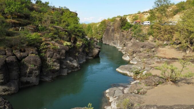 Der sonnige Morgen lässt heute einen warmen Tag erwarten. Richtig – die Temperatur klettert im Laufe des Tages über die 20° C Marke. Also früh losfahren, denn das nächste Camp liegt in Makedonien am Ufer der Ägäis, genauer am Thermaischen Golf und lädt bei diesen Temperaturen zum Relaxen in der Sonne ein. Für die ersten Kilometer ist erst mal wieder Kurvenfahrt mit landschaftlich reizvollen Aussichten – Venetikos Schlucht – angesagt. Auf den Serpentinen ist auch mit extrem langsamen „Verkehrsteilnehmern“ zu rechnen, die die Bremsen und die gute Gepäckverstauung auf die Probe stellen. Als Zwischenstation besuchen wir Vergina mit dem Hügelgrab von Phillip II., dem Vater von Alexander dem Großen. Wir werden in diesem Jahr erstmalig eine geführte Besichtigung des Museums erhalten. Die Anlage der Grabkammern und natürlich die Beigaben der teilweise bis zu ihrer Ausgrabung unberührten Gräber werden durch die Erläuterungen unseres Guides zum Leben erweckt und von ihrer Bedeutung erst richtig verstanden. Nach Vergina geht es weiter zum Camp, um am Abend vielleicht mal den eigenen Grill mit den heimatlichen Mitbringseln zu bestücken. Auf alle Fälle lädt der laue Maiabend zum Verweilen vor dem Wohnmobil ein.
