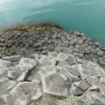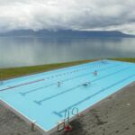 Hosfos verfügt über ein modernes Schwimmbad mit Hotpot. Unterhalb des Schwimmbades türmen sich interessante Basaltformationen in ungewöhnlich, hellgrauer Farbe.