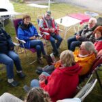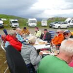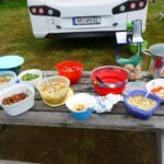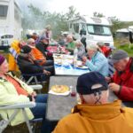 Den trockenen Spätnachmittag nutzen wir für eine gemütliche Campertafel. Am Salatbüffet steht eine große Auswahl zur Verfügung, vom Grill gibt es Geflügel und Lamm. Getränkespenden leisten einen zusätzlichen Beitrag zu einem gelungenen Abend.
