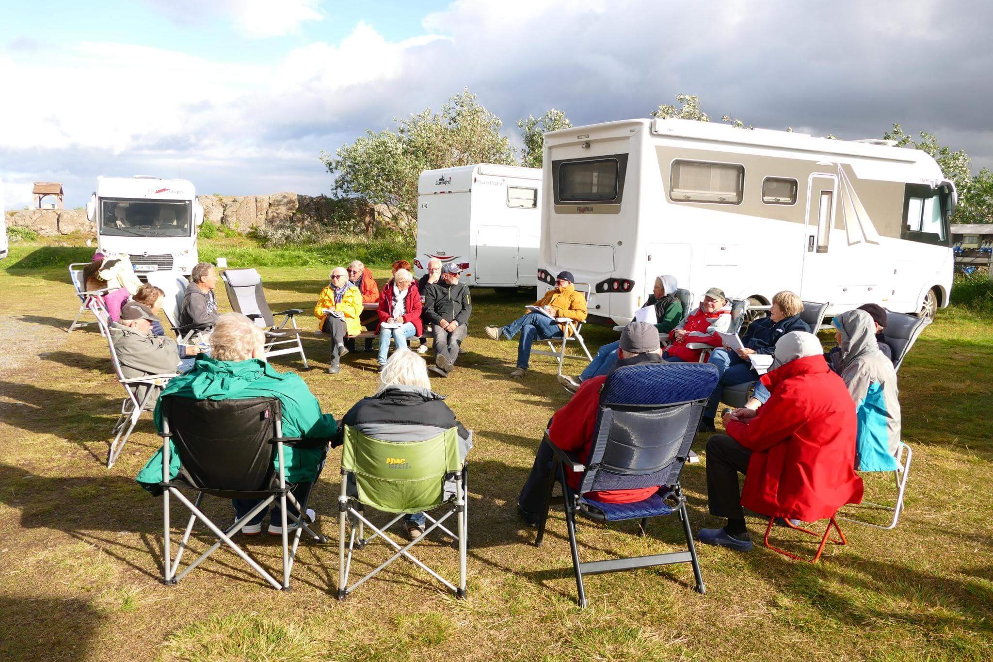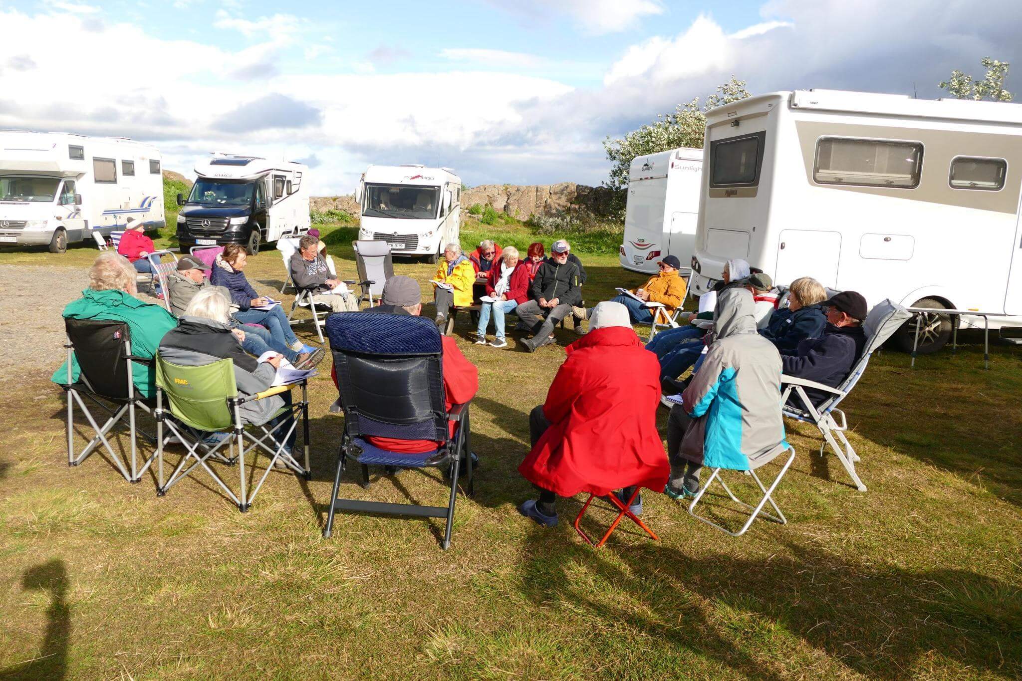 Unsere Besprechung zum nächsten Fahrtag bei Sonne, aber heftig kaltem Wind. Wir sind inzwischen Island erprobt und das macht uns nicht viel aus.