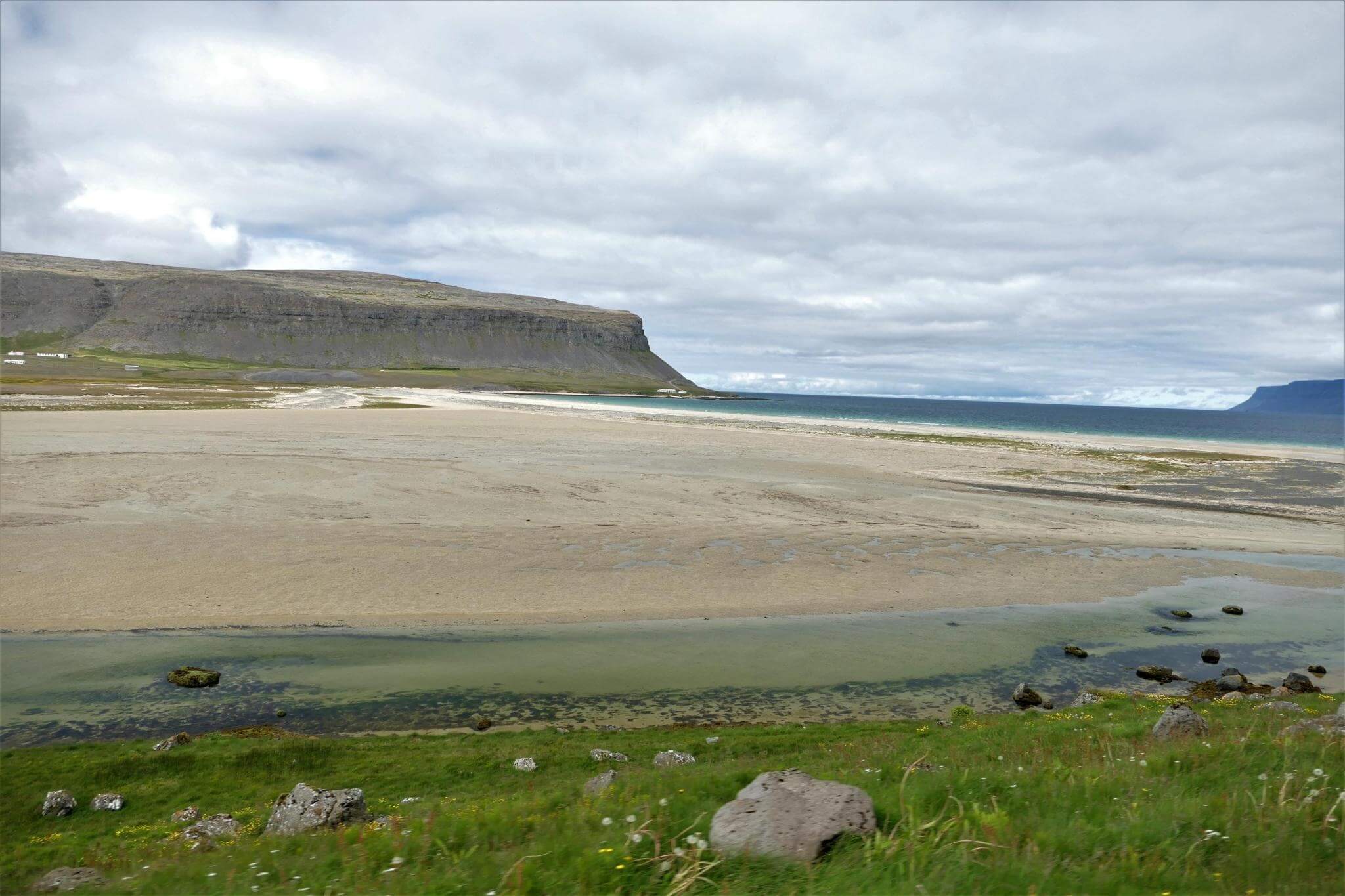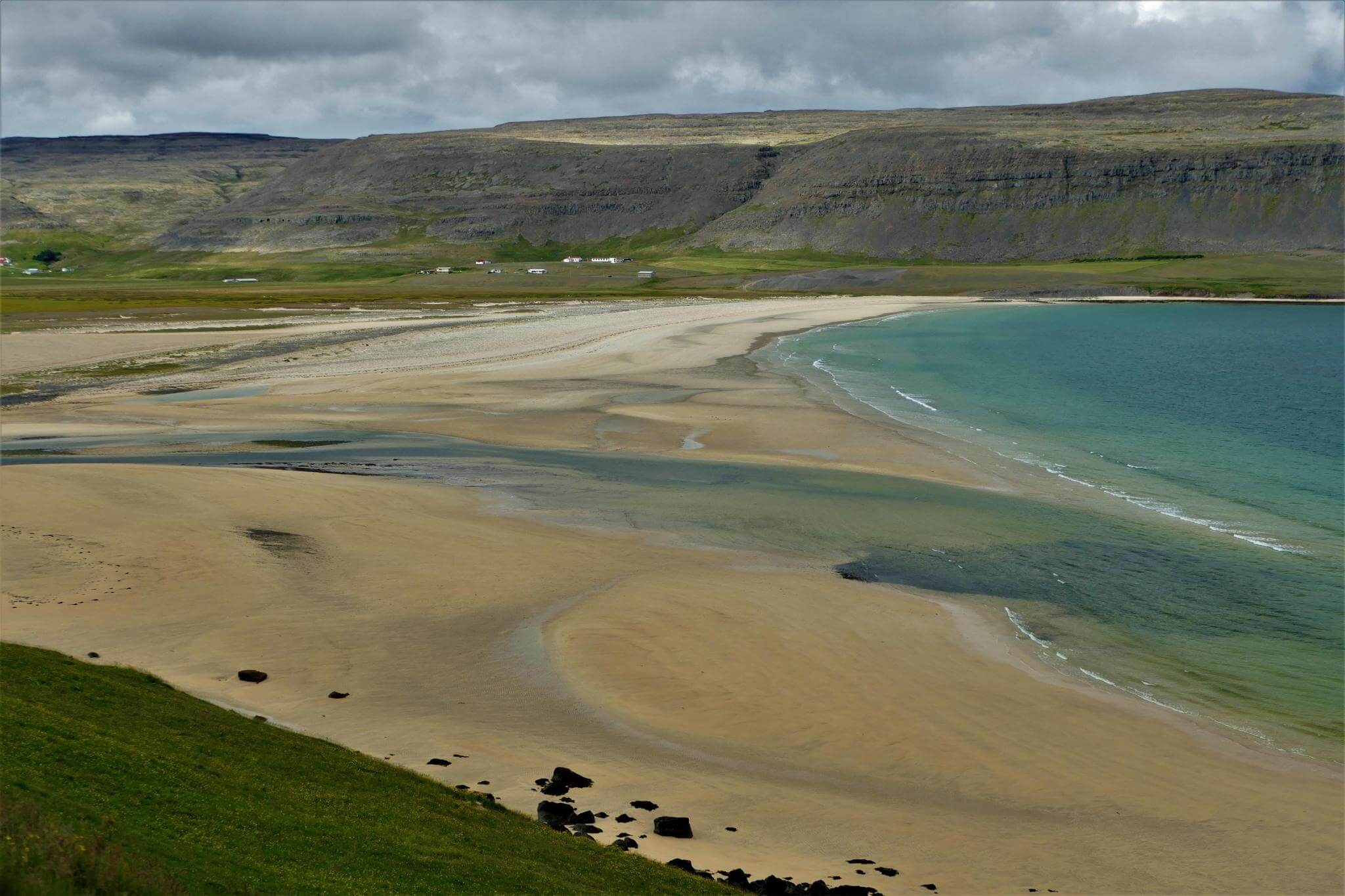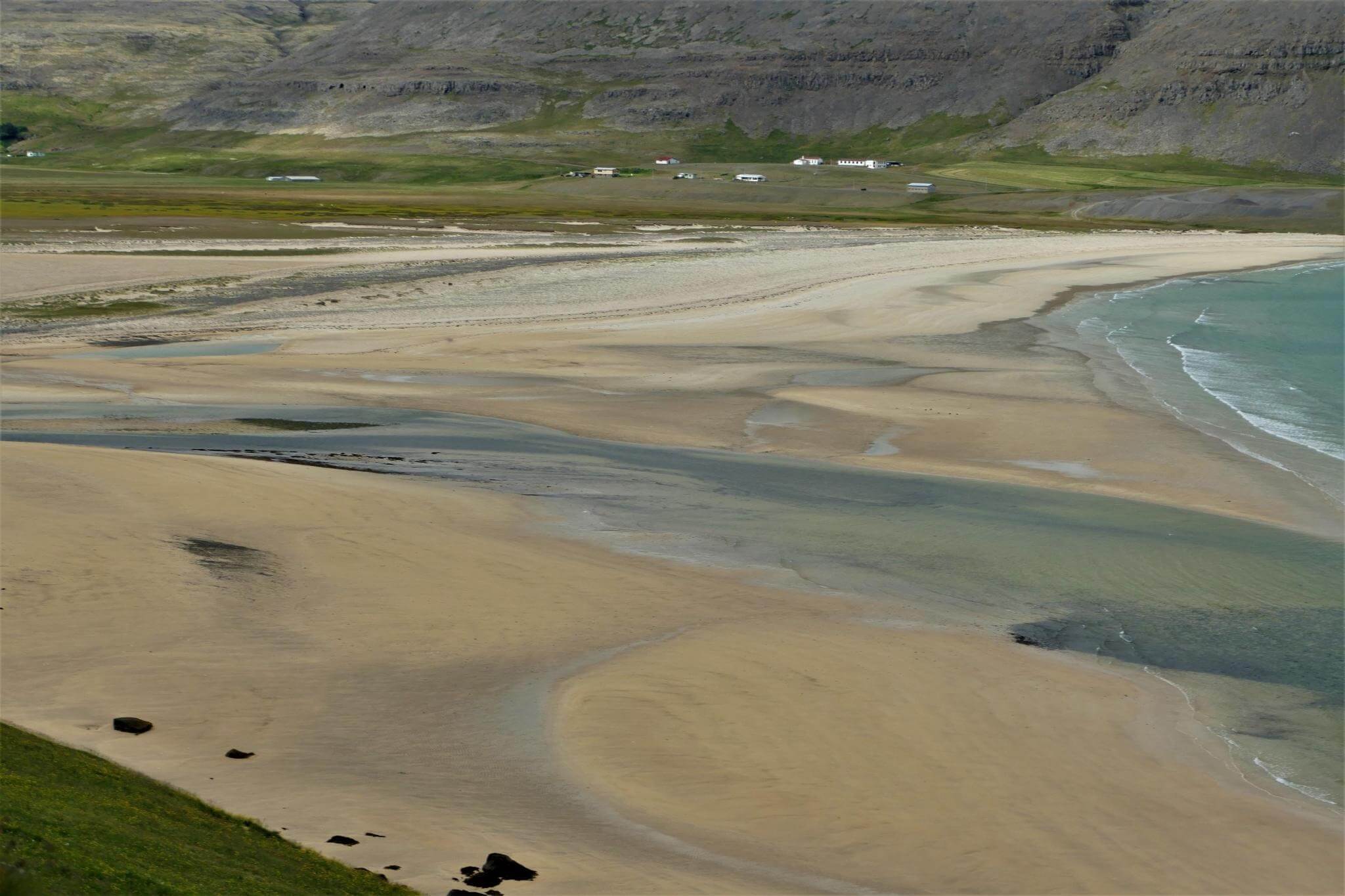 Für die größte Vulkaninsel der Welt erreichen wir ungewöhnlich weiße Sandstrände kurz vor den Westfjorden.