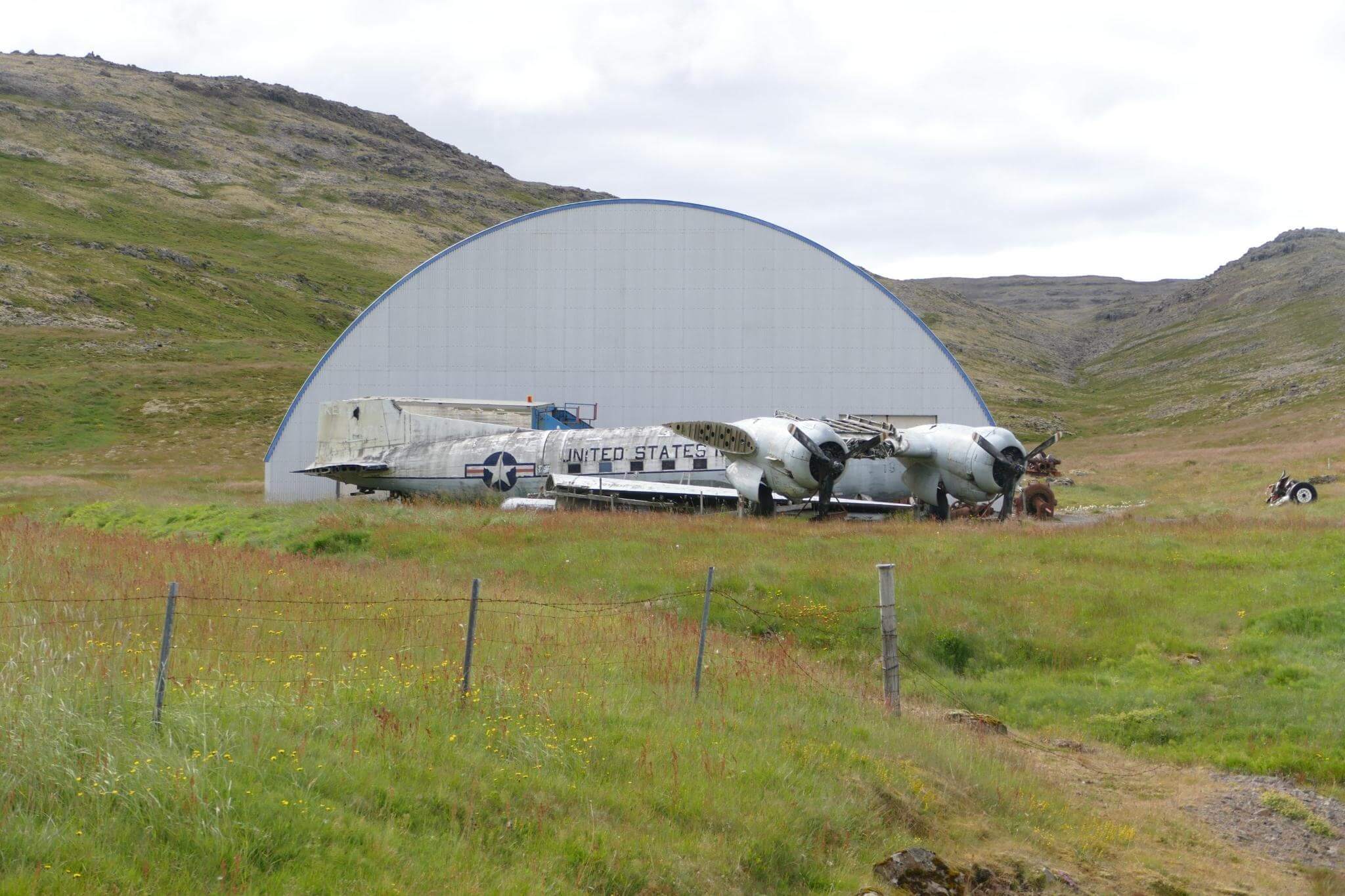 Hier beginnt eine Schotterstraße, die uns vorbei an eine Flugzeug- und Schiffsmuseum, zu unserem Camp in Breidavik führt.