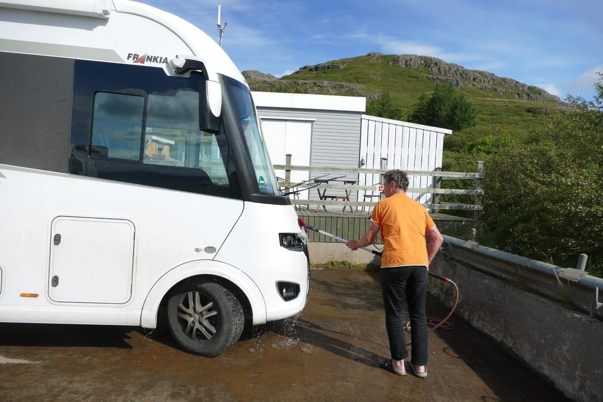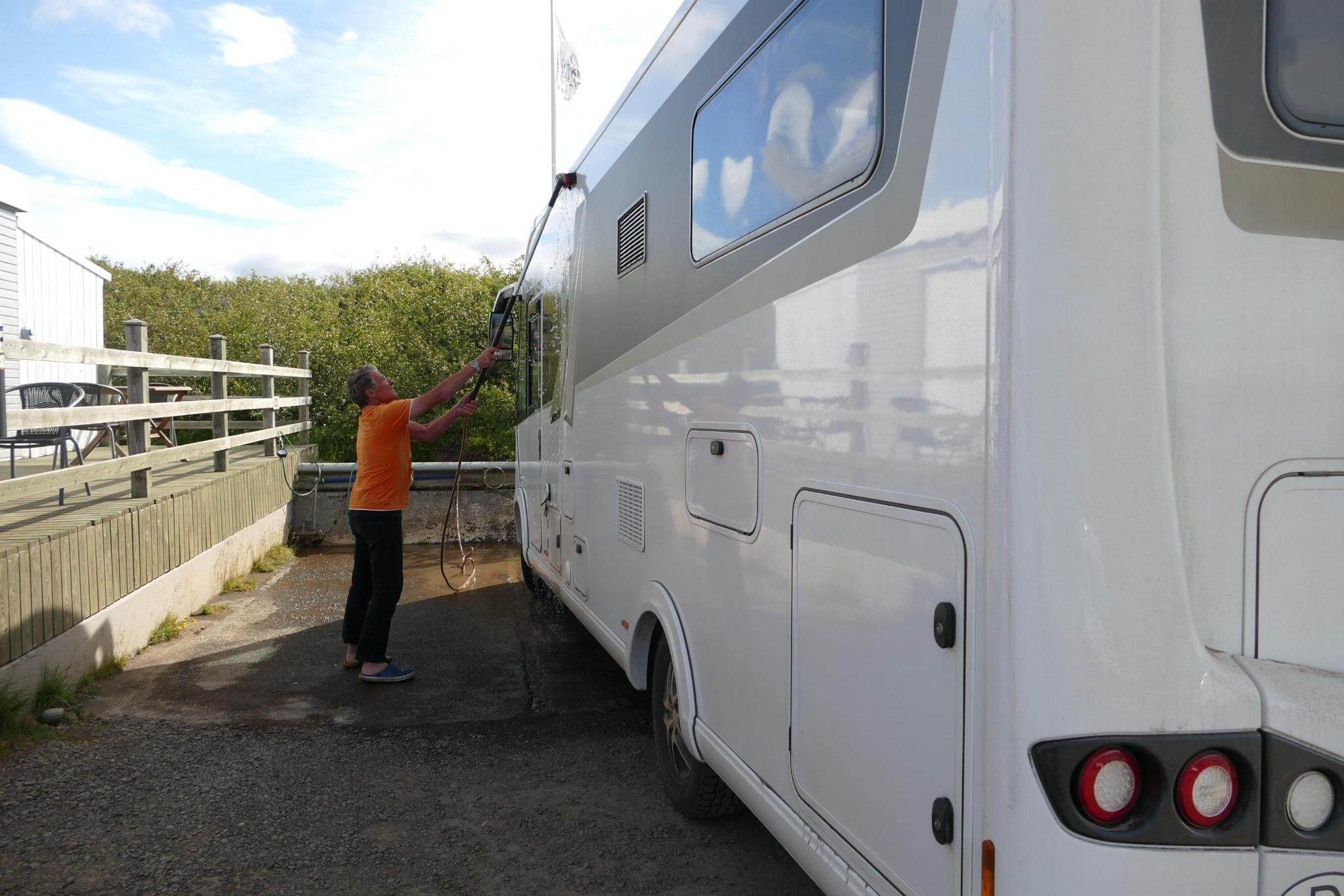 Inzwischen haben wir einiges an „Gravel Road“ mit unseren Fahrzeugen hinter uns, da muss der grobe Dreck einfach mal runter. Damit andere auch mal rankommen, reicht die Zeit nicht alle Schuhe zu wechseln.