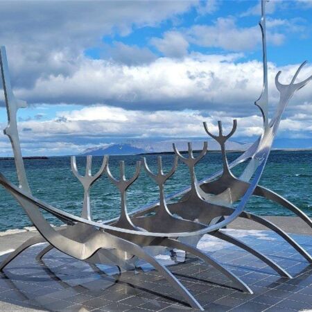 Am Sun Voyager machen wir den nächsten Stopp. Die Skulptur wird von vielen als ein Wikinger Boot angesehen, wurde aber vom Künstler als Traum-Boot und Ode an die Sonne gesehen.