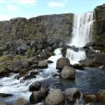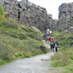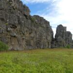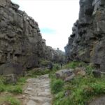 Auf unserer Strecke heute wechseln wir von der amerikanischen tektonischen-auf die eurasische tektonische Platte und besuchen Pingvellier, die Abbruchkante, wo sich die Platten pro Jahr 2cm voneinander wegbewegen.