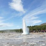 In einem weiteren geothermischen Feld Islands befindet sich ein Heisswasser Geysir, der in Intervallen Heißwasserfontänen aus dem Boden schießt.